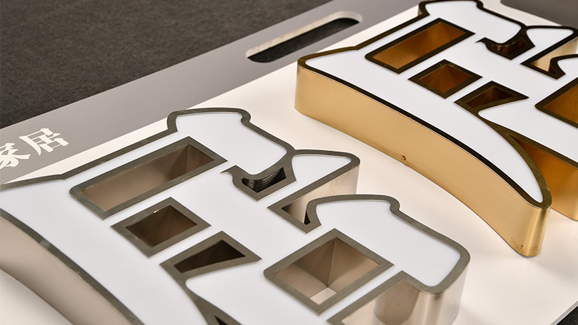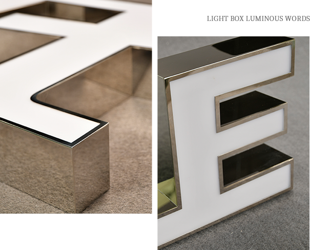 也稱(chēng)平面發(fā)光字、不繡鋼包邊字,字殼采用不繡鋼切割焊接組裝色板和底板的工序,具有獨(dú)特的強(qiáng)度.較高的耐磨性、不易生銹和方便維修,應(yīng)用非常廣泛,戶(hù)外招牌,戶(hù)內(nèi)背景墻,高空字都可以.